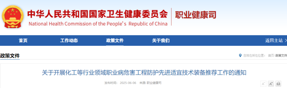 为贯彻落实《健康中国行动(2019-2030年)》《职业病防治规划(2021-2025年)》有关工作部署,加快推进职业病危害工程防护先进适宜技术装备研发和推广应用,推动传统产业优化升级、发展新质生产力,国家卫生健康委、工业和信息化部拟遴选发布一批化工等行业领域职业病危害工程防护先进适宜技术装备目录。现开展推荐工作,有关事项通知如下: