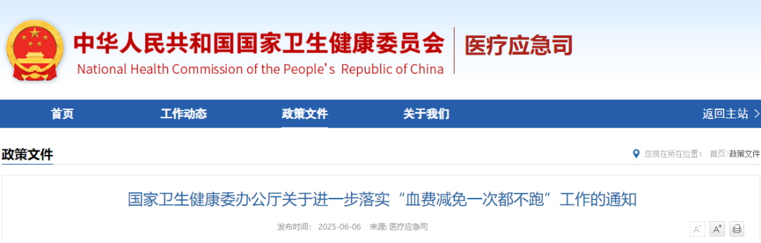 到2025年底前,全国所有血站和用血医疗机构全面落实“血费减免一次都不跑”政策,形成“医院直免为主、线上申请为辅”的服务模式。国家卫生健康委将定期汇总、调度各地血费减免办理情况和相关工作进展,确保政策落地见效,群众可感可及。