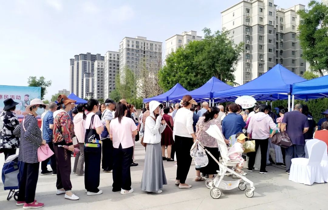 活动中,百姓们排队等待义诊。