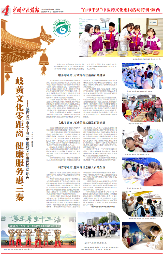 从秦巴山区到关中平原,从城市广场到乡镇校园……春夏之际,陕西省各地联动,举办多场“百市千县”中医药文化惠民活动,让优质的诊疗服务、有趣的文化体验、通俗易懂的健康知识融入百姓生活,惠及三秦大地。