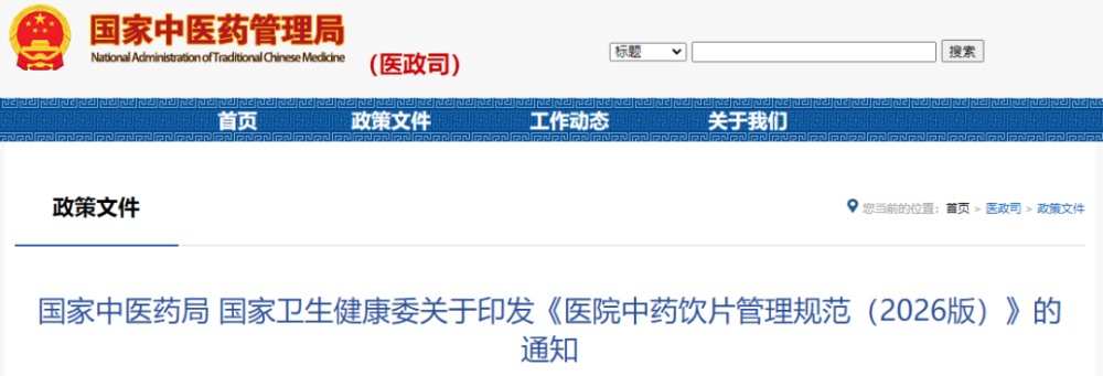 为进一步规范医院中药饮片管理,保障人体用药安全有效,提升中医药防病治病能力和临床疗效,国家中医药局会同国家卫生健康委组织对《医院中药饮片管理规范》进行了修订,形成《医院中药饮片管理规范(2026版)》。现印发给你们,请遵照执行。